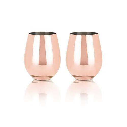 Viski Copper Stemless Wine Glasses (Set of 2) – Modern stemless glasses with a copper finish for a striking, contemporary table moment.